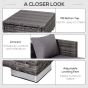 - THREE PIECE SET: The rattan corner sofa includes a two-seater corner sofa, a two-seater sofa with a reclining back and a storage coffee table. Seats up to four people with plenty of room for them to relax. The rattan garden furniture is perfect for bringing family and friends together this Summer and beyond.