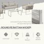 4-Seater Patio Wicker Sofa Set, Outdoor Metal Frame Wrapped Round PE Rattan Conservatory Furniture w/ Cushions, Tempered Glass Table, Grey