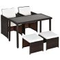 4-Seater Rattan Garden Furniture Space-saving Wicker Weave Sofa Set Conservatory Dining Table Table Chair Footrest Cushioned Brown