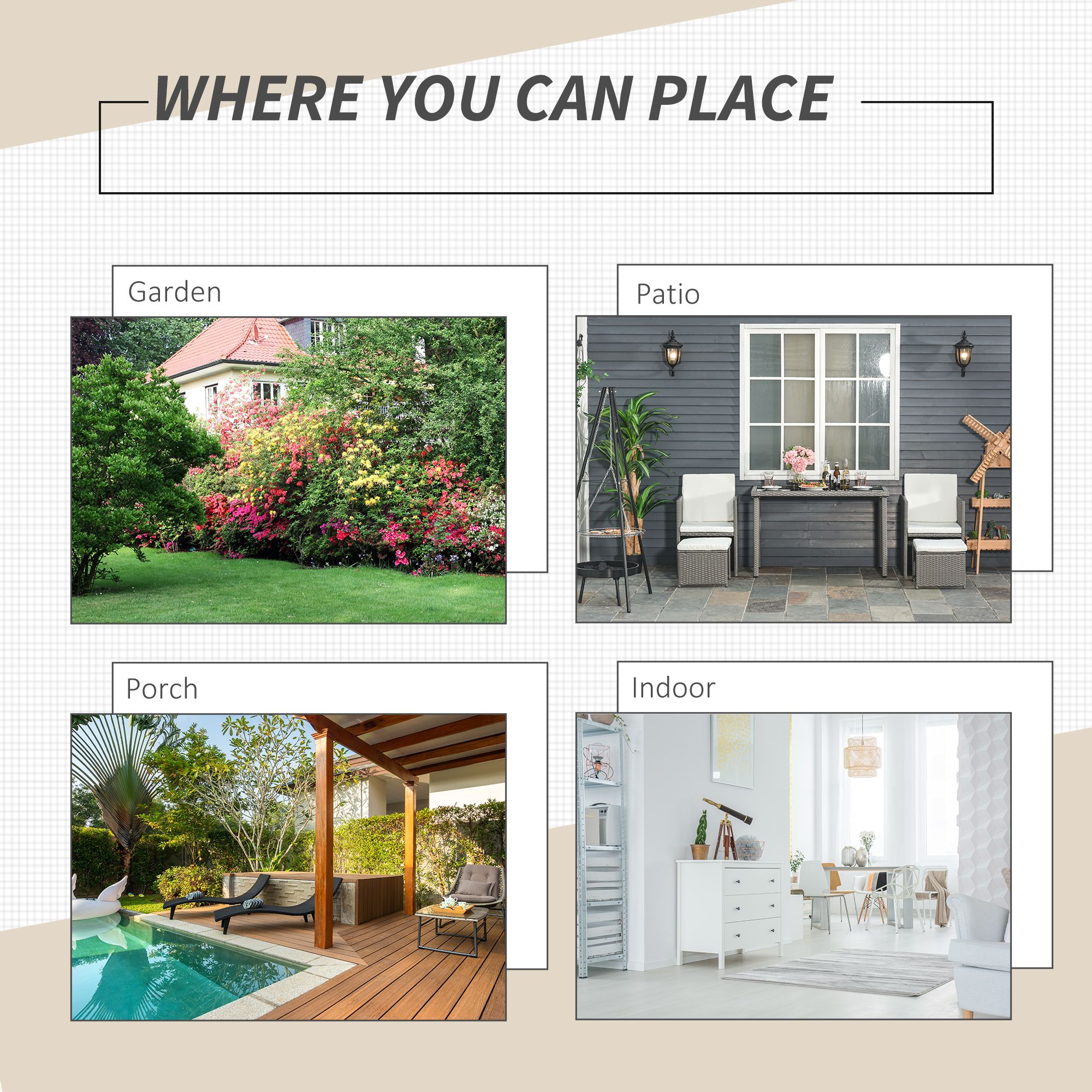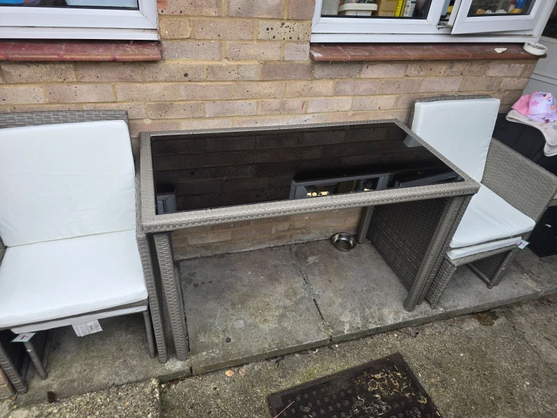 This 5 piece rattan set is an ideal solution for a small garden, patio or conservatory. Comes complete with 2 chairs, 2 footstools and a table, ideal for any outdoor setting. Made from a steel frame construction and covered with PE Rattan weave, this set will look perfect in any Décor. It also has the ability for the chairs and stools to be stored under the table making it space friendly when not in use. A great set to have while enjoying the summer, with the added luxury to dine if required.