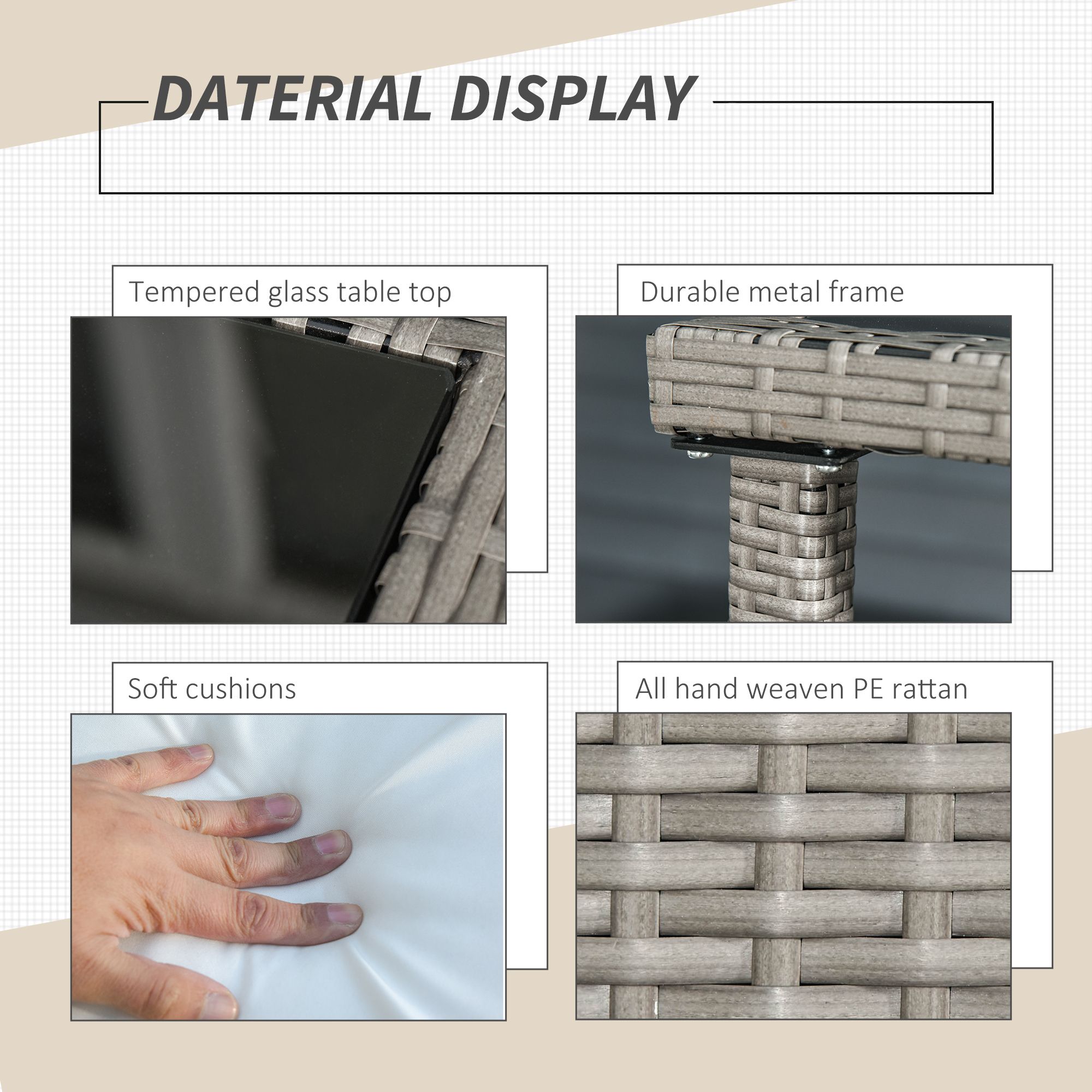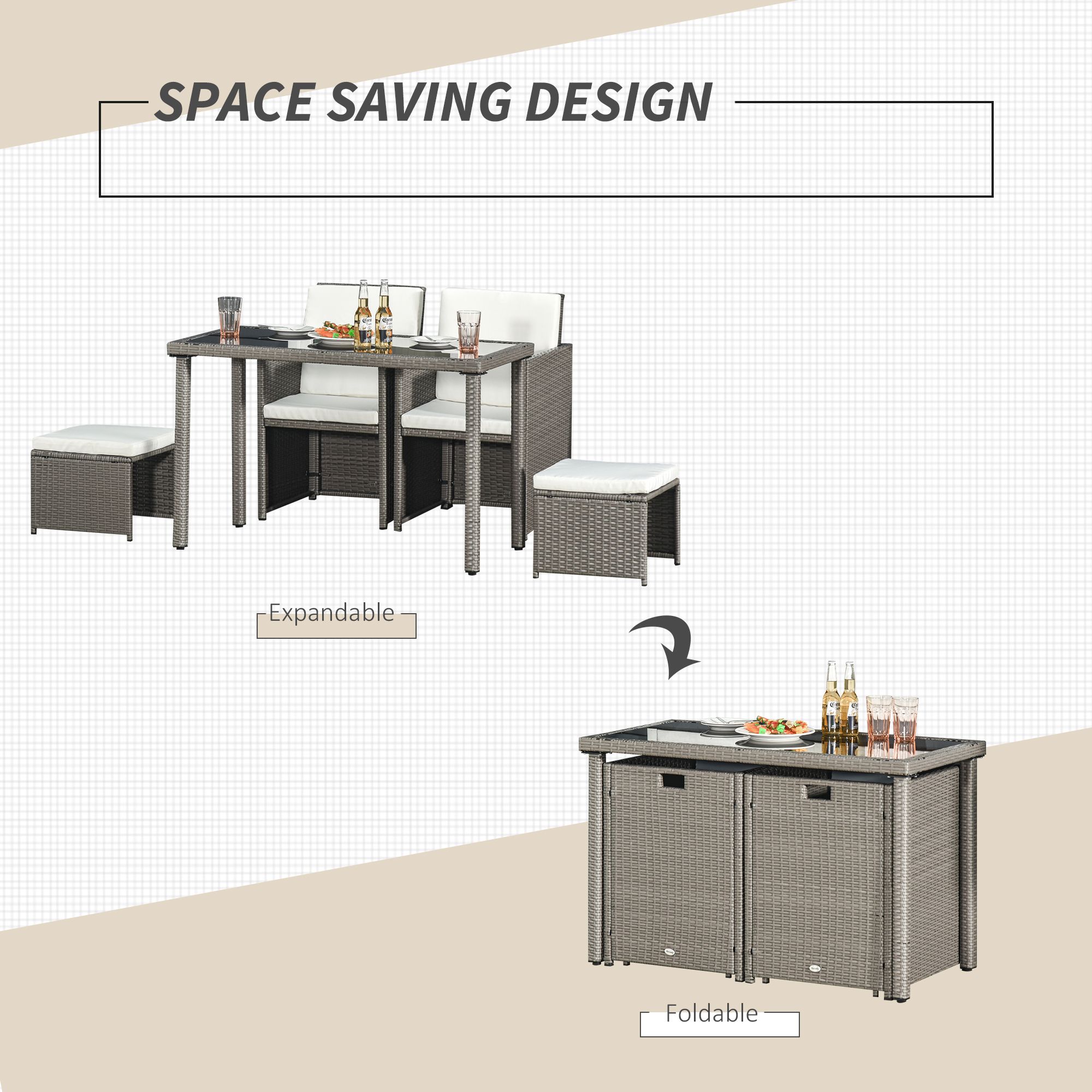 4-Seater Rattan Garden Furniture Space-saving Wicker Weave Sofa Set Conservatory Dining Table Table Chair Footrest Cushioned Grey