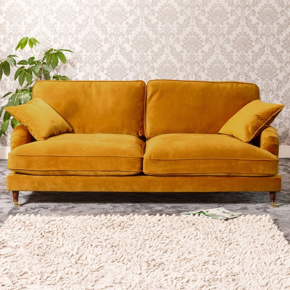 4 Seater Sofa - SOLVARE Velvet Fabric Sofa - Yellow
