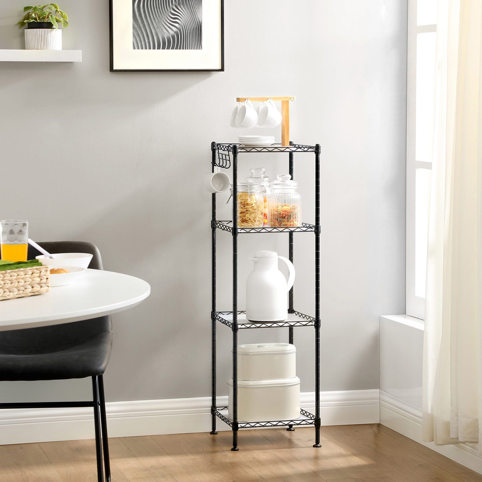 Every Room Likes It: Sized at 30 x 30 x 102 cm, this space-saving storage rack basically fits every room. Whether you set it in the living room for potted plants and decorations, in the laundry room for detergents and softeners, or in the kitchen for spices and cooking utilities, it will work like a charm.No Tools Required: Not good at handiwork? You don't have to be. With numbered parts and easy-to-follow instructions, you can assemble this bathroom shelf in no time. By the way, no tools or screws are involved in the assembly.