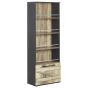 Modern barn style bookcase is a fashionable addition to your living room. Spacious cabinet is an underlying feature of this piece, proving extra storage space essential in every flat. Bookcase front, back wall and shelves are characterised by a decorative wood grain effect that adds much ornamental aspect to every rustic-inspired interior. Details: Color: Light Wood, Black. Main material: Particle Board. Additional material: Synthetic Material, Metal. Weight: 26 Assembly: Full Assembly Required