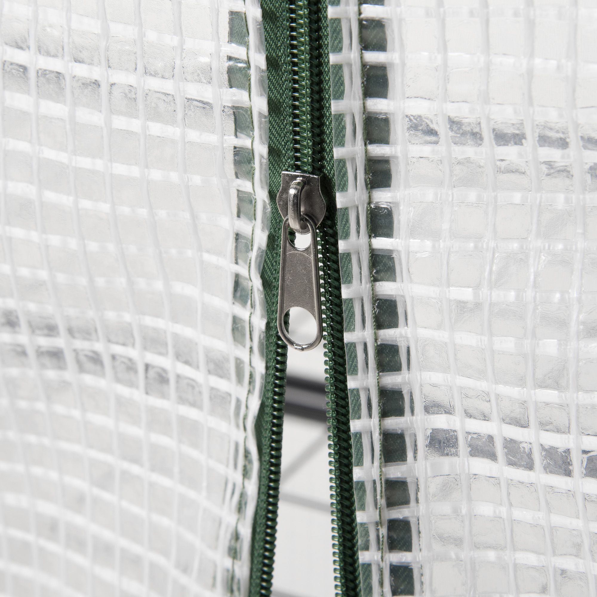 This walk-in garden greenhouse is perfect for the home gardening to protect and grow your plants in cold weather outside. The steel frame and PE cover will keep your plants and vegetables more secure than on their own. The roll-up design of the hot house ensures excellent ventilation for your plants, and the zipped door provides easy access for you to take care of them. Start your backyard gardening today with this compact warm house from throughout the year.