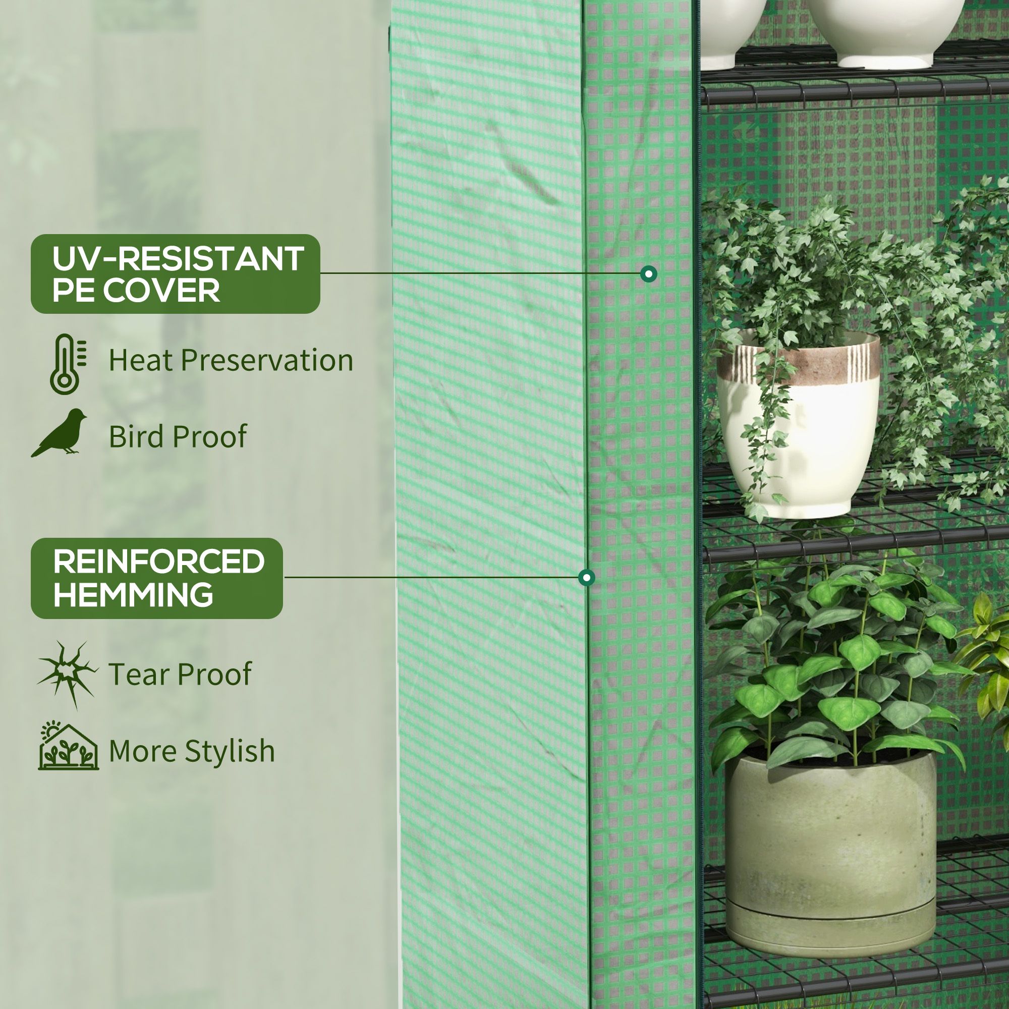 4 Tier Mini Greenhouse with Reinforced PE Cover, Portable Green House w/ Roll-up Door and Wire Shelves, 170H x 120W x 50Dcm, Green