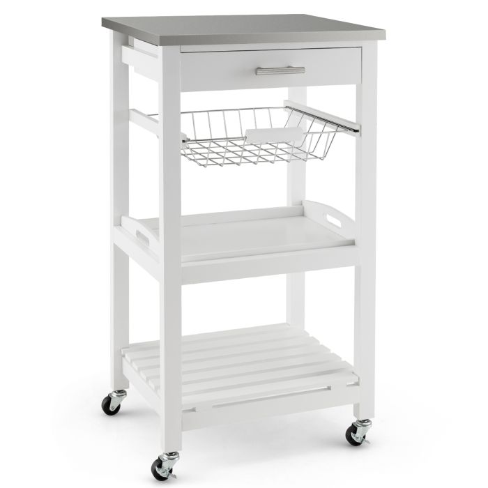 4-Tier Rolling Trolley Cart with Lock Wheels Basket and Drawer-White
