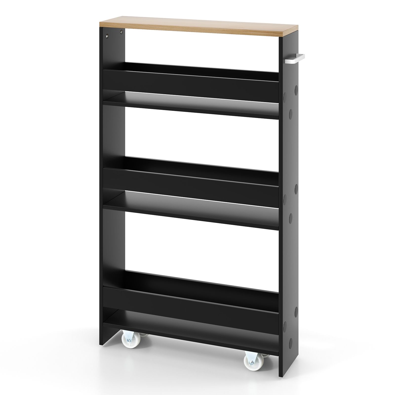 4-Tier Slide-out Rolling Slim Storage Trolley for Kitchen Dining Room-Black
