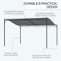 Give yourself a spot to take shade and shelter outdoors with this lean to pergola from. It is crafted into a 243 x 395cm design, consisting of a taller back and short front, with a waved connecting frame covered with a top 180gsm polyester canopy, providing shelter against direct sunlight. With an elegant scroll design on the front, the wall mounted canopy is finished with eight drainage holes on the top to prevent water accumulation and with eight ground stakes to pin to the ground.