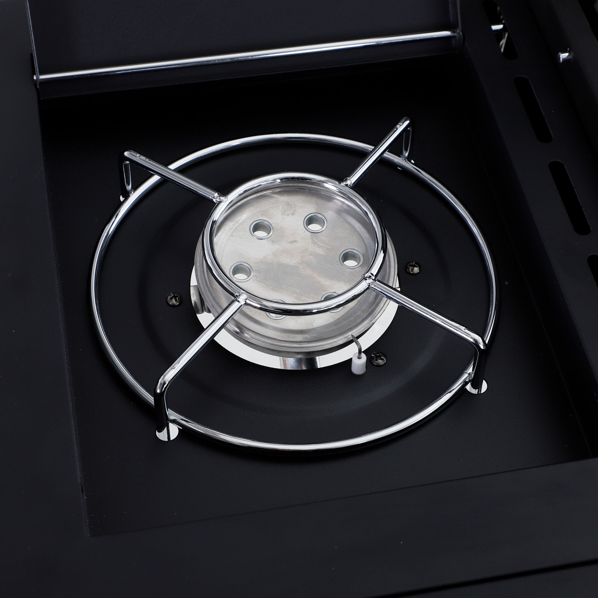 - The large size gas BBQ grill with 4 stainless steel burners and an aluminium side burner