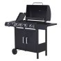 - 4 + 1 GAS BBQ: The large size gas BBQ grill with 4 stainless steel burners and an aluminium side burner, ideal for outdoor barbecue parties. Black high temperature spray powder also ensure your safe use