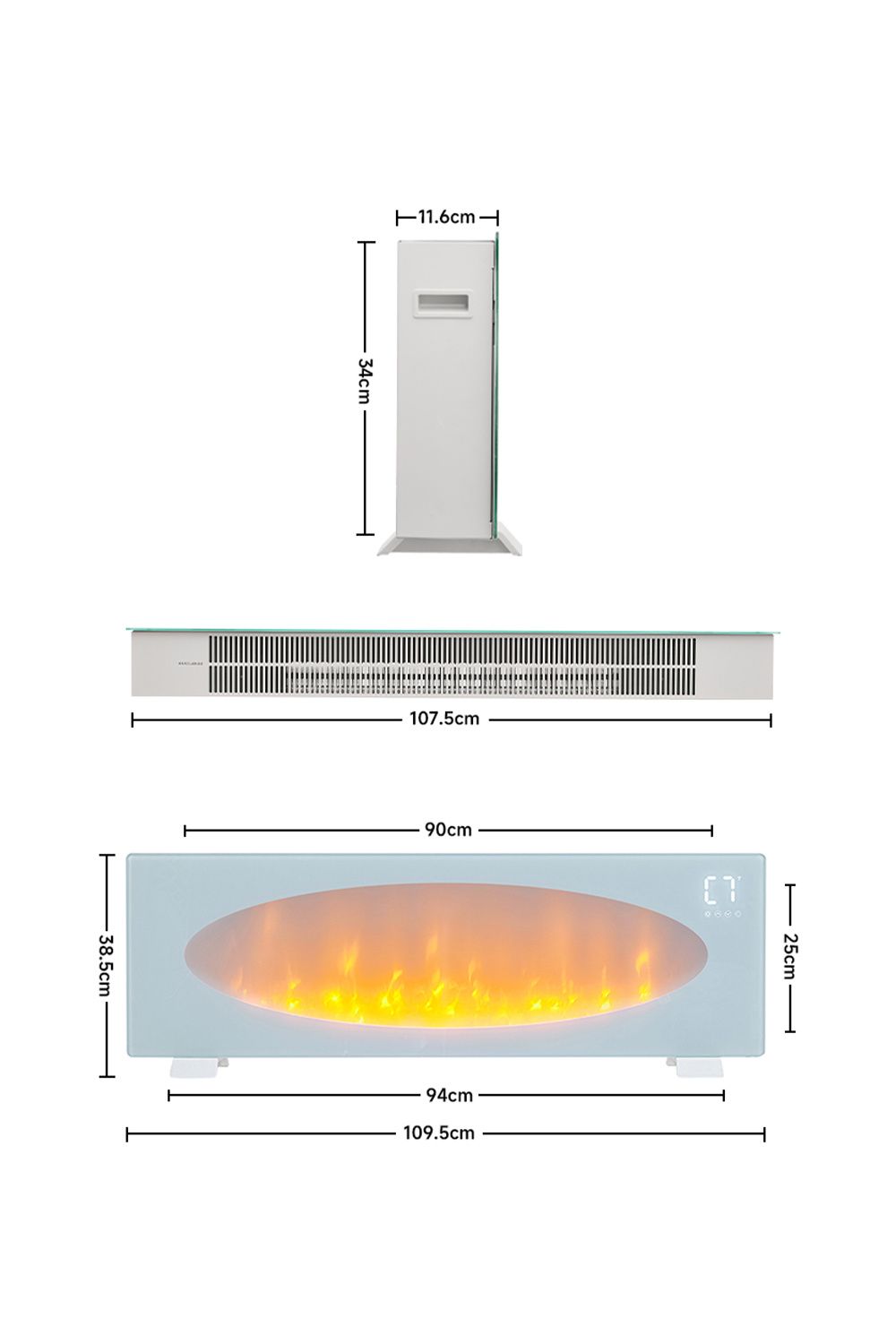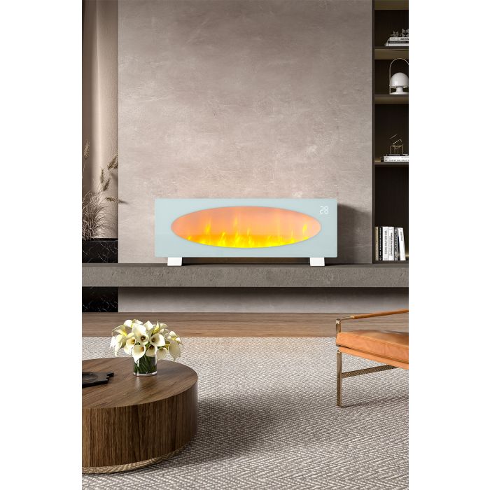 Experience modern elegance with 's fireplace: expansive viewing, mesmerizing LED flames, remote-controlled brightness, heat, and timer. No venting or gas lines needed for eco-friendly comfort. Enjoy fireplace charm without the mess.