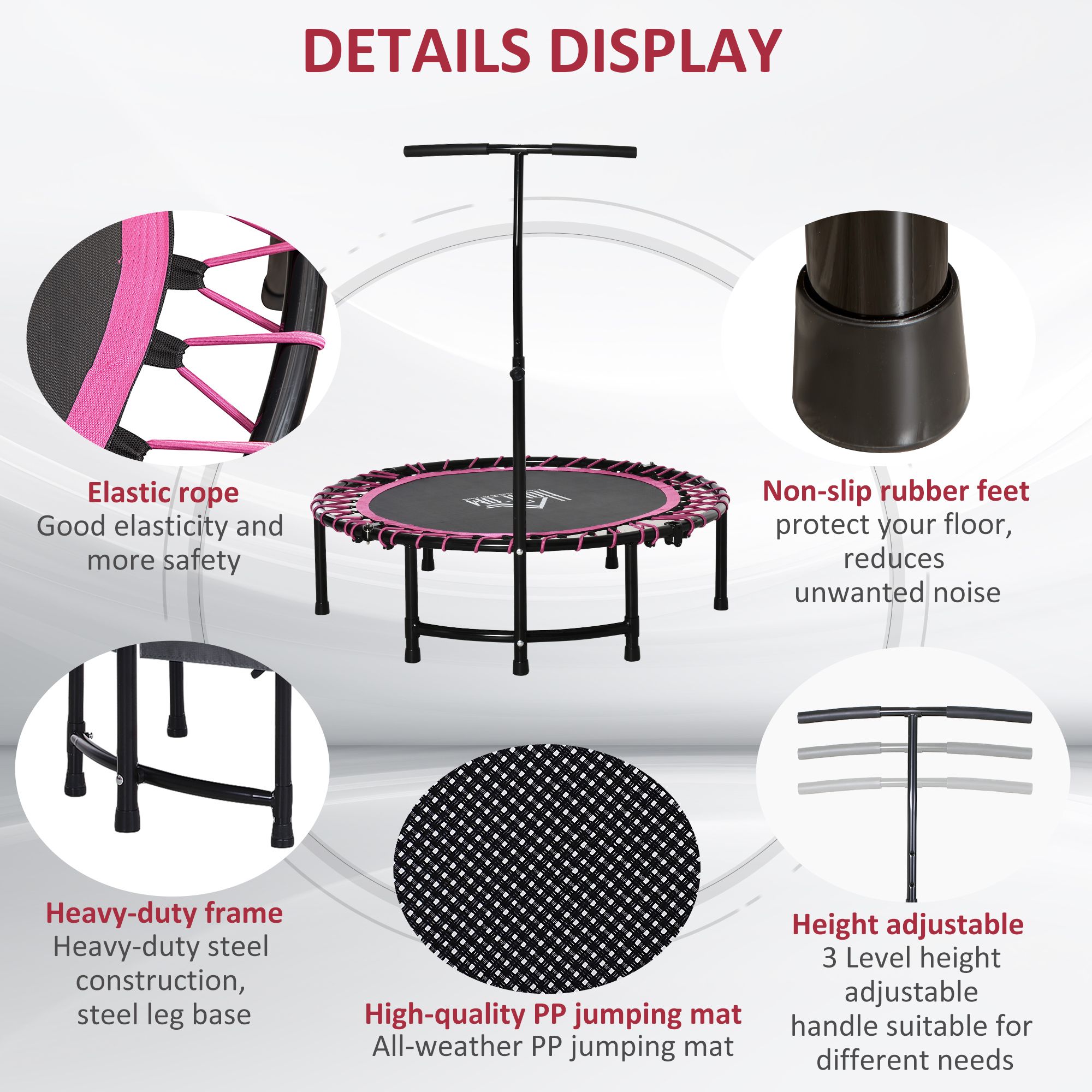 45" Round Mini Trampoline Rebounder Indoor Outdoor Jumper with Adjustable Handle - Pink