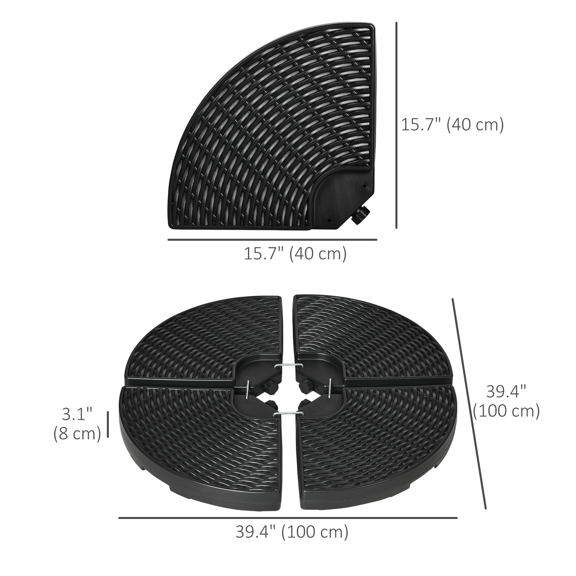 4PCs Parasol Bases, Patio Umbrella Weights for Parasol, Wicker Effect HDPE Water and Sand Filled Base with Built-in Handles