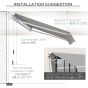 - DIMENSIONS: 395L x 250Wcm. Handle: 150cm. NOTE: Do not leave open in adverse weather conditions. NOTE: Minimum installation height 2.5m.