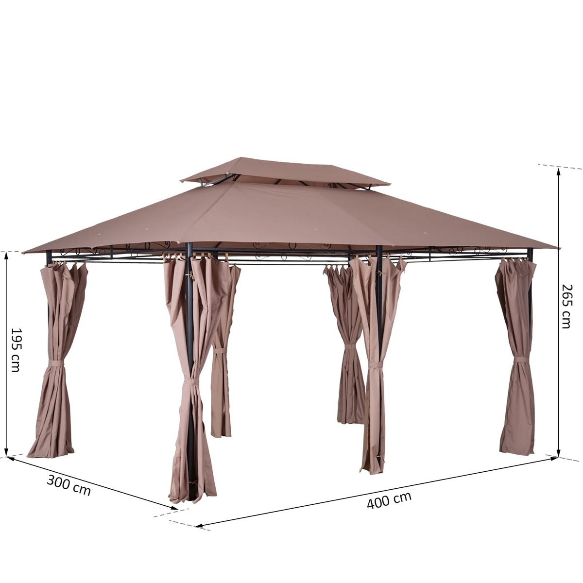 The stylish steel 2-tier canopy gazebo tent by will turn your yard into a sophisticated and functional focal point with the stylish appearance and considerate design. The weather-resistant vented canopy of this gazebo provides superior protection against the elements. The removable zippered curtains provide versatility by allowing you to detach and remove the curtains to create an open and airy environment or secure the curtains closed to protect against pesky insects. Life is meant to be enjoyed outdoors.