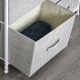 Bring easy and effortless storage into the home and beyond with this fabric drawer chest from. It features 2 small and three large drawers, giving you lots of room, with the flat surface top providing additional space. Made from linen, the drawers give a softened look to the appearance and feature handles to pull out easily. Connected to the metal frame with adjustable feet ensure this side cupboard keeps balanced, and it's finished with handles on the top so you can move it easily.