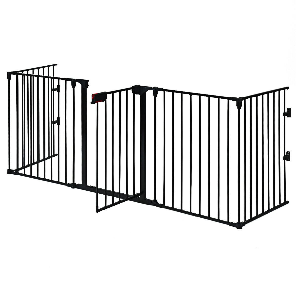5 Panel Baby Safety Playpen Fireplace Barrier Gate Room Divider-Black