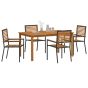 5 Piece Garden Dining Set Black Poly Rattan Acacia