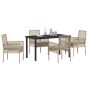 5 Piece Garden Dining Set with Cushions Beige Poly Rattan