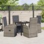 5 Piece Garden Dining Set with Cushions Grey Poly Rattan