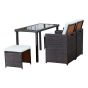 This 5 piece rattan set is an ideal solution for a small garden, patio or conservatory. Comes complete with 2 chairs, 2 footstools and a table, ideal for any outdoor setting. Made from a steel frame construction and covered with PE Rattan weave, this set will look perfect in any décor. It also has the ability for the chairs and stools to be stored under the table making it space friendly when not in use. A great set to have while enjoying the summer, with the added luxury to dine if required.