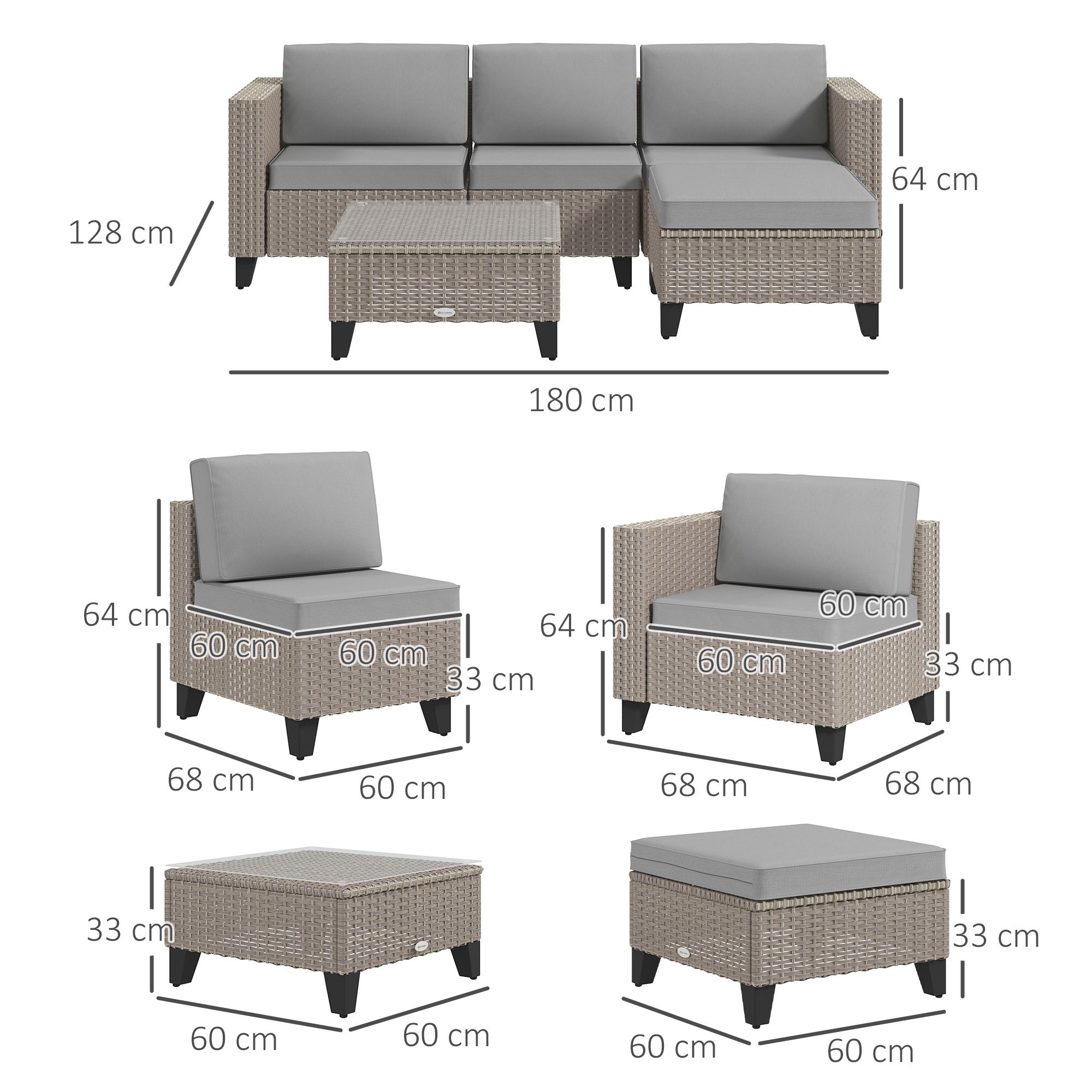 5-Piece Rattan Patio Furniture Set with Corner Sofa, Footstools, Coffee Table, for Poolside, Brown
