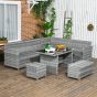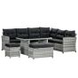 5-Piece Rattan Patio Furniture Set with Corner Sofa, Footstools, Glass Coffee Table, Cushions, Mixed Grey
