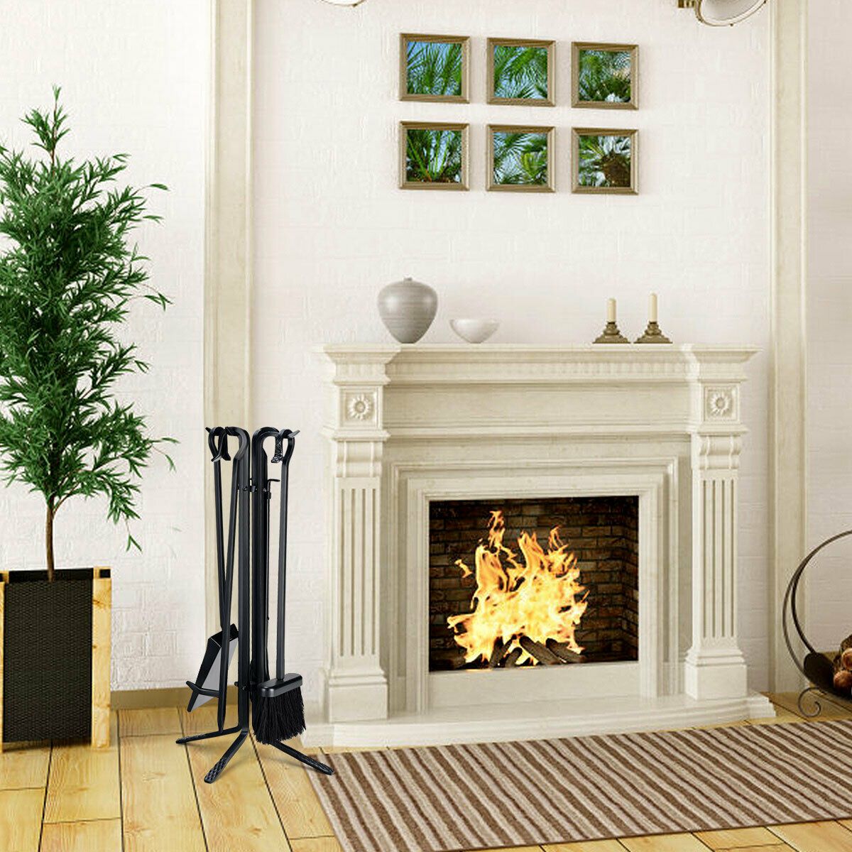 This black fireside accessory set allows you to operate your fireplace or stove safely and efficiently. Constructed from iron, the elegant rack holds 4 important tools helping you to safely and efficiently use your traditional fireplace: Log tongs, a poker, a shovel and a brush. The iron has been sprayed in rust and corrosion-resistant paint offering durability. The fire set is designed to be sturdy and easy to use. If you are looking for such a product, don't hesitate to purchase it now! Ergonomic Handles And Stable Base: The ring-like handles are cleverly used in brush, shovel, tong and poker, therefore, whichever fireplace tool you choose, it will be convenient to use. And you can find that our fireplace tool stand has a four-footed design, and this design is able to strengthen the stability effectively. 5 Piece Optimal Fireplace Tool Set: This 5 pieces fireplace tool set comes with brush, shovel, tong, poker and holder stand, which equips with basic fireplace tools for creating a complete and handy warming experience around fireside. Fits To Any Decorations: It is more than a functional tool,but also a decoration to your house because of its aesthetic design and stylish colour appearance,adds a classic touch to your house, thus,it will be also a very nice and homey hearth gift idea and a house warming gift for relatives and friends' as a new house decoration. Multi-Functional: Suitable for most fireplaces,log holder/racks and outdoor pit pits,the fireplace tongs and poker help to safely place kindling and reposition logs while the shovel and fireplace brush features strong bristles to easily sweep ash and debris,why don’t buy this practical set? Getting Rid Of Storage Trouble: You can choose to store these 5 fireplace tools respectively as it can save space, which is especially suitable for house without spacious space. Besides, this stand can be taken apart, so if you do not use them, you can do that and then the storage will be very space-saving.
