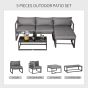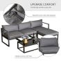 5 Pieces Outdoor Patio Furniture Set, Sofa Couch with Glass Coffee Table, Cushioned Chairs and Metal Frame, for Balcony Garden Backyard, Grey