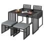 5 Pieces Patio Dining Set with Removable Cushions and Rattan Ottomans-Grey