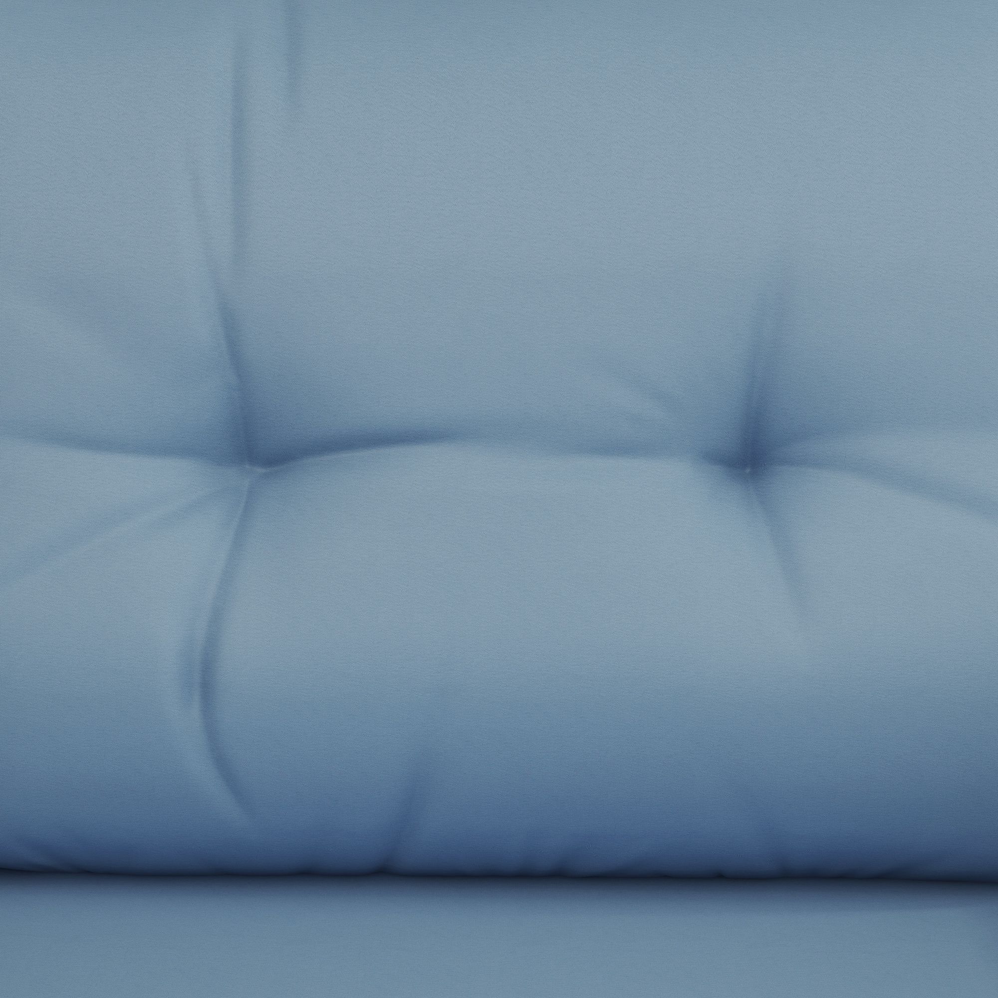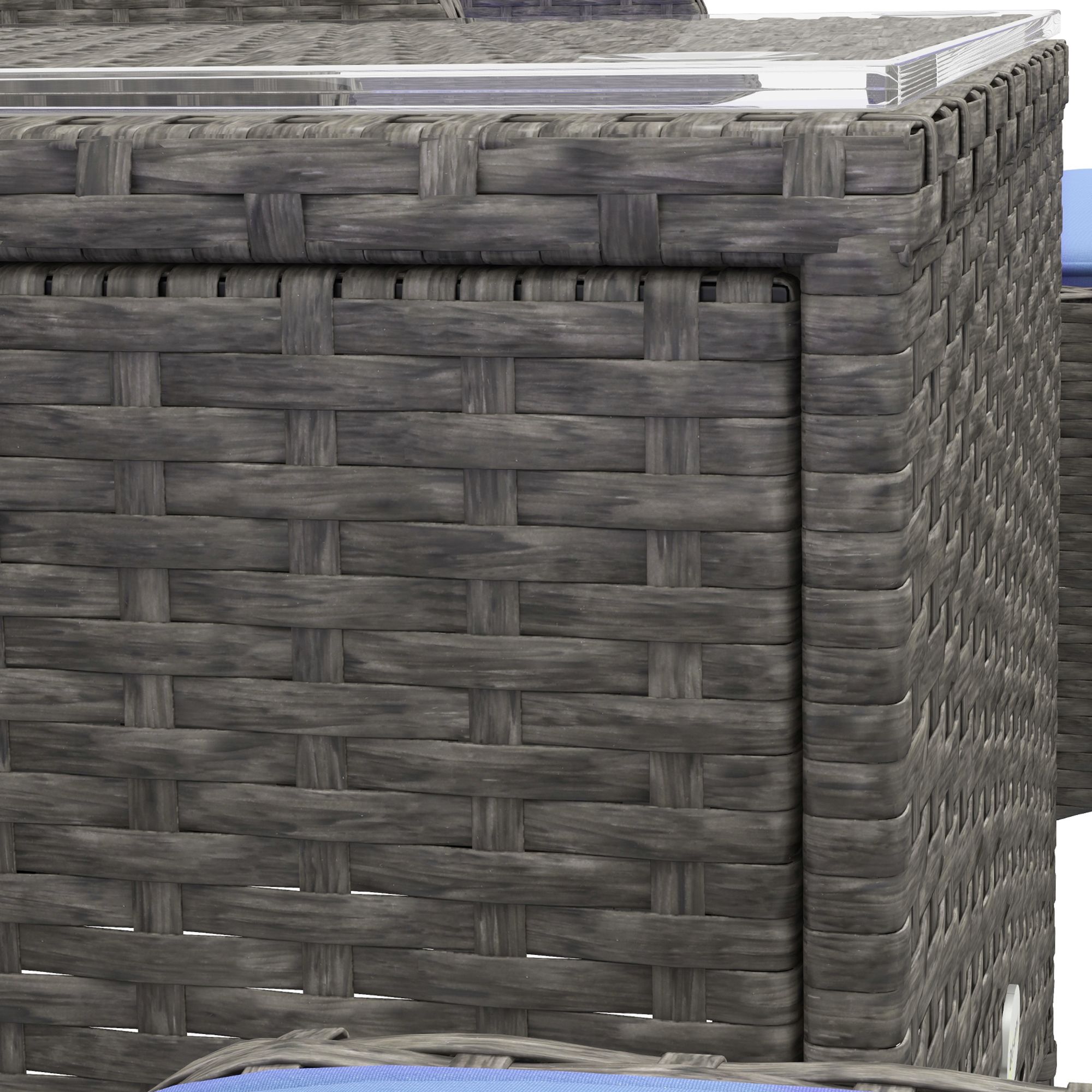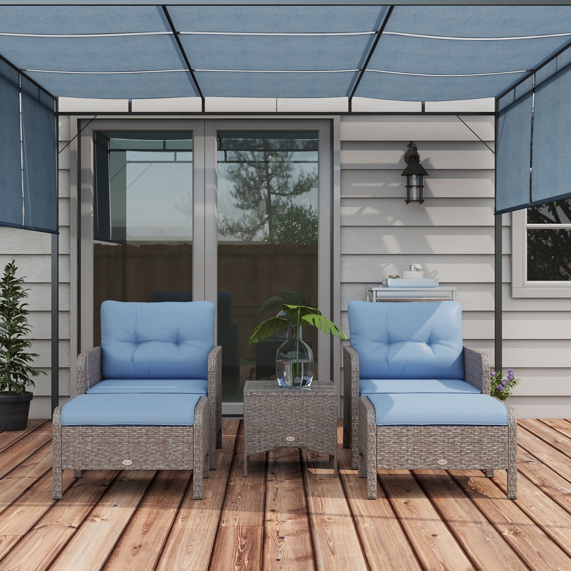 5 Pieces PE Rattan Garden Furniture Set, Wicker Outdoor Sofa Set w/ 2 Armchairs 2 Stools Glass Top Table Cushions, Blue