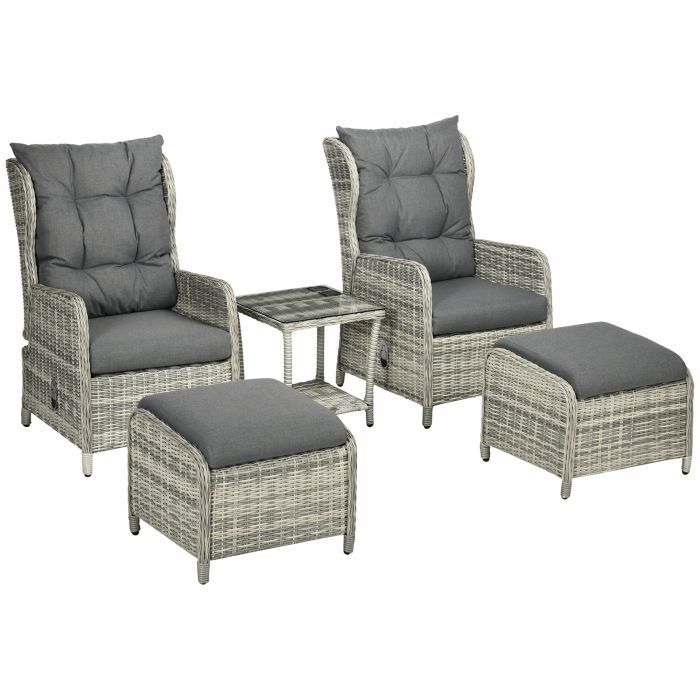 - 5 pieces rattan furniture set includes 2 reclining chairs, 2 footstool and 1 table