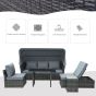 - MULTIFUNCTION DESIGN: The rattan garden furniture sets come with a retractable canopy, you can easily open and close the canopy by the gas spring, a side of the sofa can be raised to become a lounge bed, the grey rattan sofa set can be various combinations base on your need