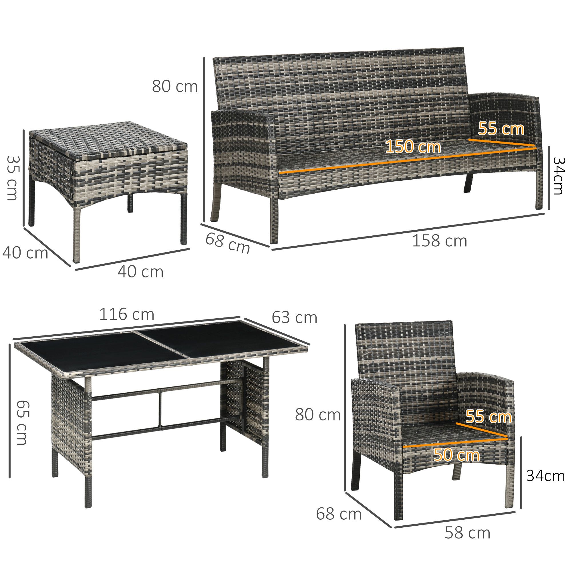 - Glass-top dining table: A matching design for this rattan garden furniture set, with a sleek touch. A centrepiece for everyone to socialise together.