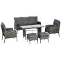 - Six-piece set: Rattan furniture set includes two armchairs, two footstools, a three-seater sofa and a matching coffee table. Separate pieces to set up how you want.