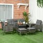 Your best company to gather round under the sun - say thanks to this rattan garden sofa set. Each piece has a strong, powder coated steel frame, which is wrapped with plastic wicker - a stylish rattan look, which also protects the steel frame. Set comes with two armchairs, two footstools, a three-seater sofa and a matching coffee table. All seats and footstool come with padded cushions for comfort. Note: two people required to build this set.