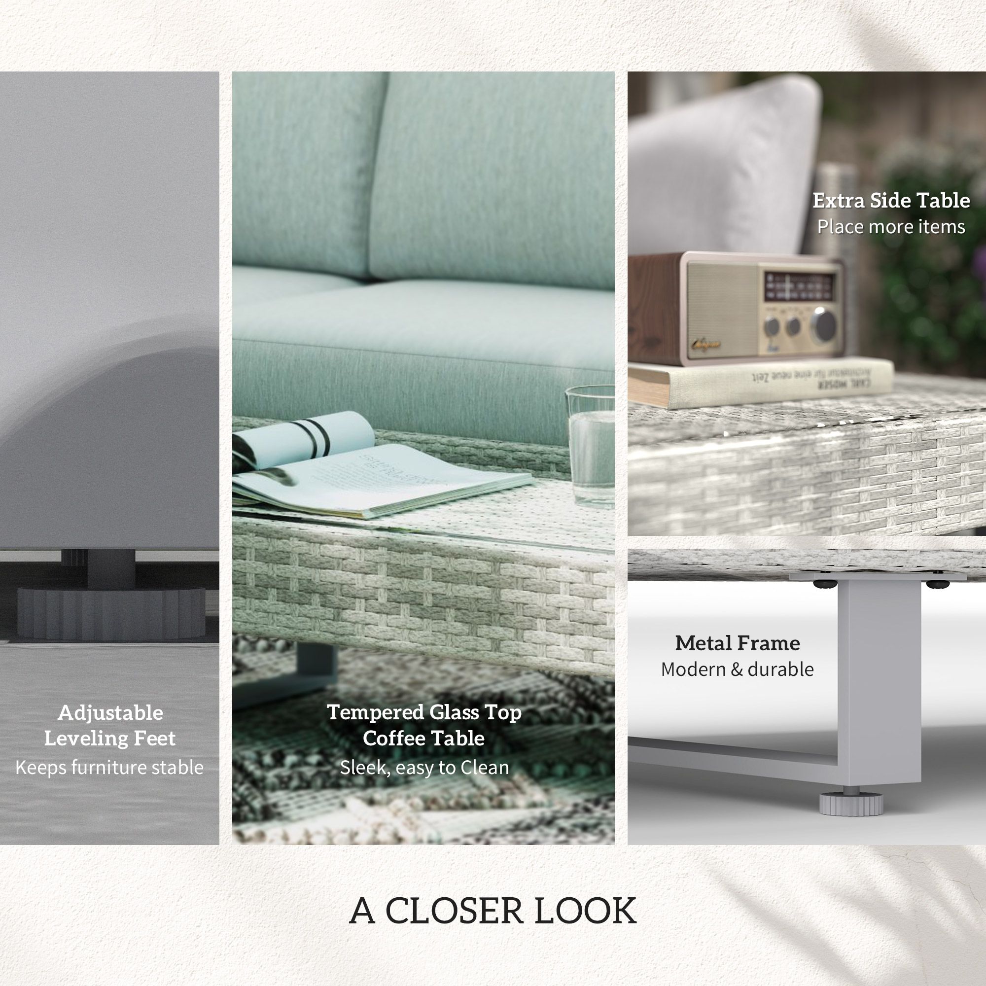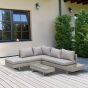 5-Seater Rattan Garden Furniture Wicker Conservatory Corner Sofa Set Chaise Lounge with Coffee Table, Side Table & Cushions-Grey
