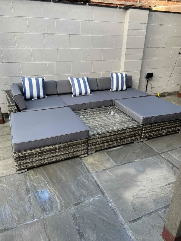 - RATTAN IMITATION: The rattan garden furniture sets are made from thick and rigid plastic, the garden corner sofa keeps the style and look of rattan, but is stronger and sturdier, whilst being lighter, so it"™s easier to move around and store