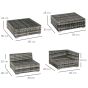 5-Seater Rattan Sofa Coffee Table Set Sectional Wicker Weave Furniture for Garden Outdoor Conservatory w/ Pillow Cushion Grey