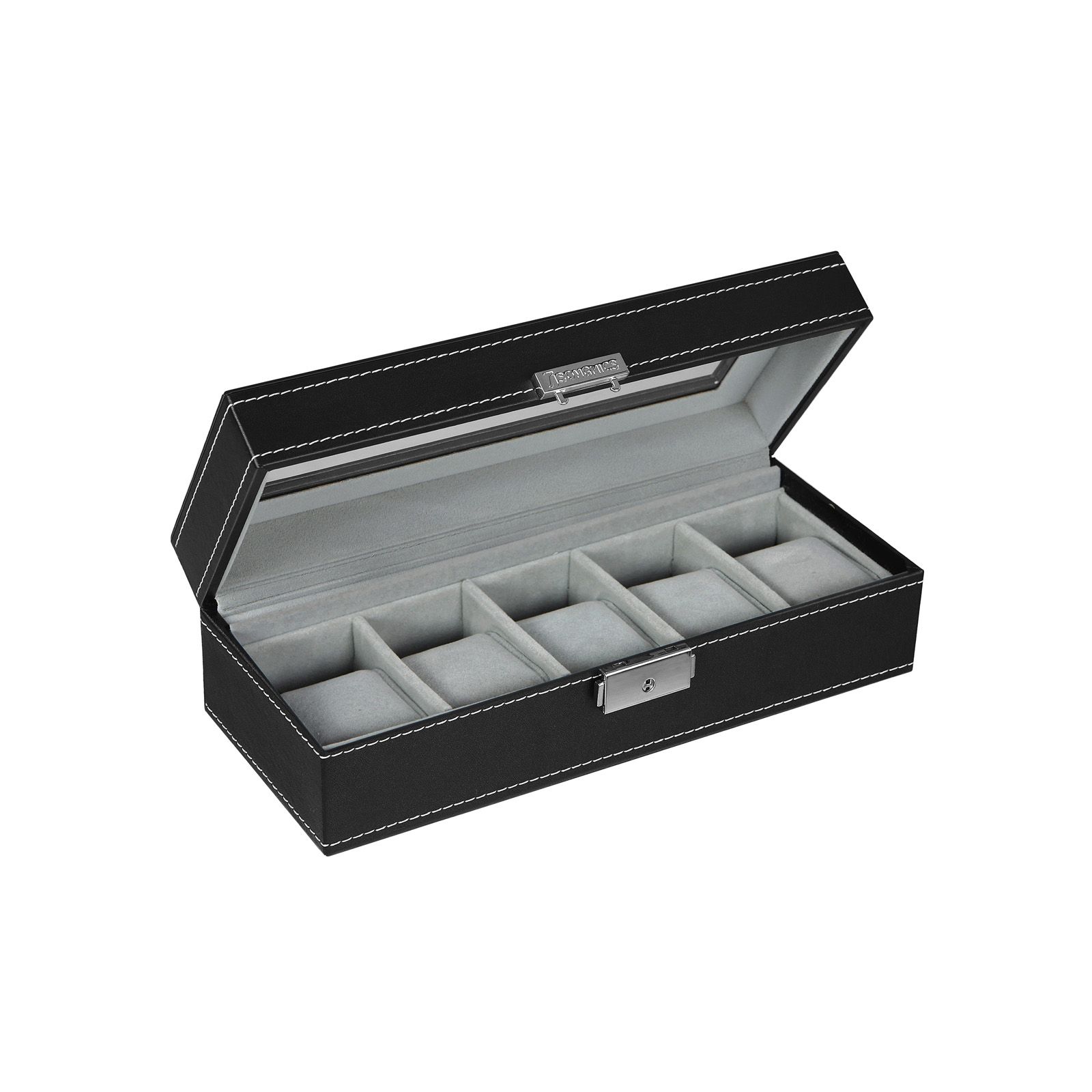 Introducing our 5-Slot Watch Box, a sophisticated storage solution for your valuable timepieces. Crafted with a sleek exterior and soft interior lining, it ensures your watches are protected from dust and scratches. The box features 5 individual compartments with removable cushions, accommodating watches of various sizes. Keep your watch collection organized and elegantly displayed with this stylish and practical watch box.
