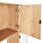 A perfect blend of open and closed storage, this bookcase offers both display space and hidden compartments to keep everything organized. The warm wood effect and subtle black details create a modern yet inviting look, while the sleek metal legs add a light, airy touch. Made from laminated particle board, it's a stylish and practical choice for a living room, home office, or creative space.