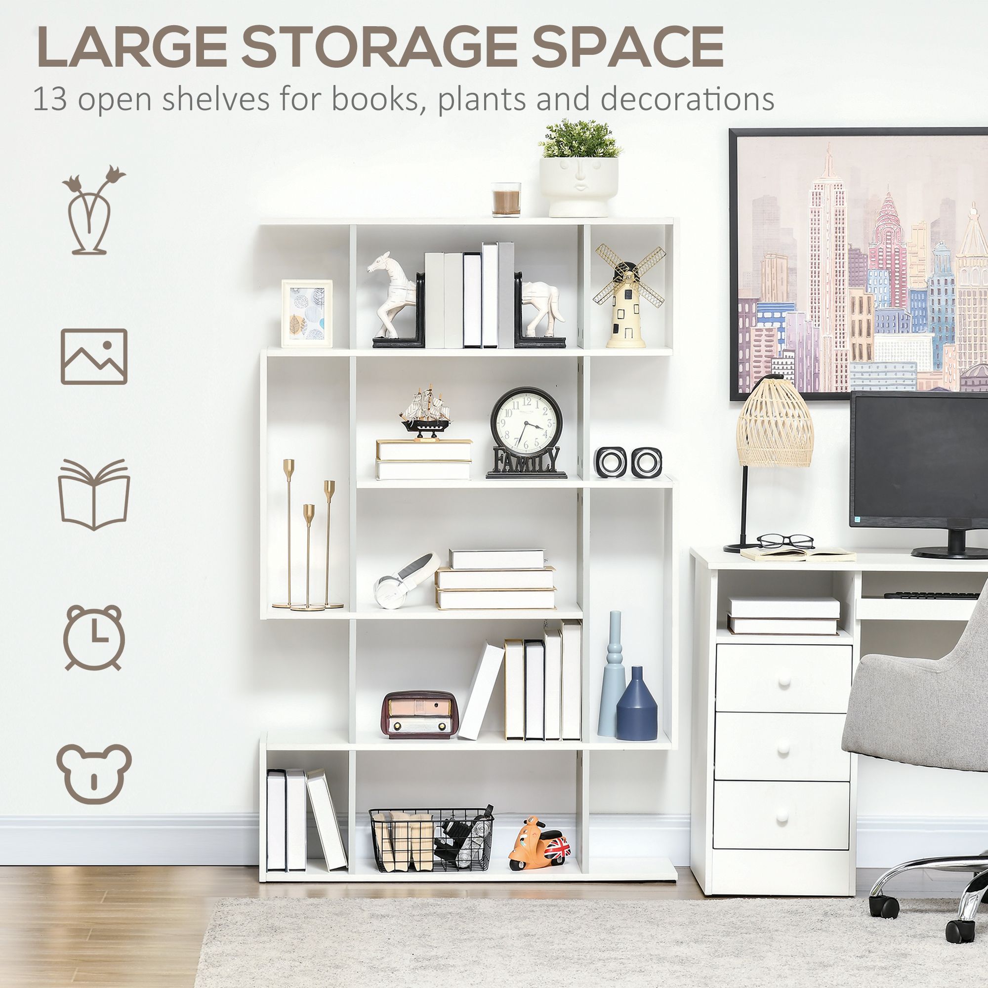 5-Tier Bookshelf, Modern Bookcase with 13 Open Shelves, Freestanding Decorative Storage Shelving for Home Office and Study, White