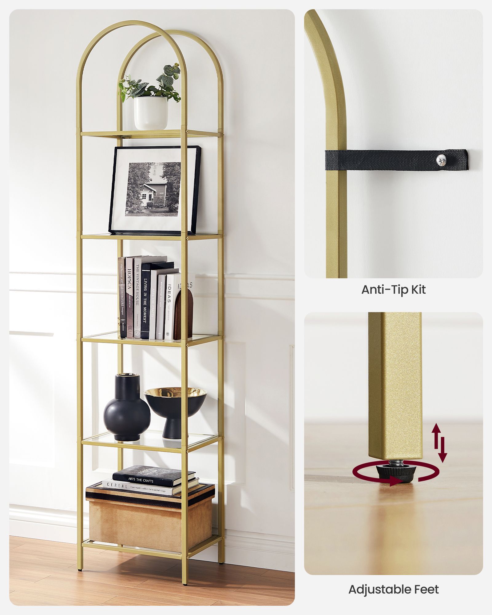 5-Tier Shelf, Tempered Glass Shelving Unit, Arched Design