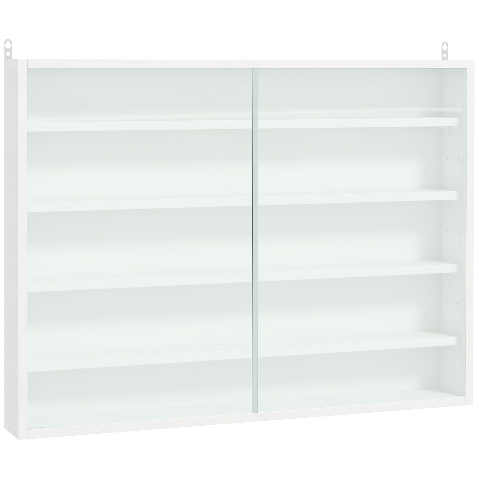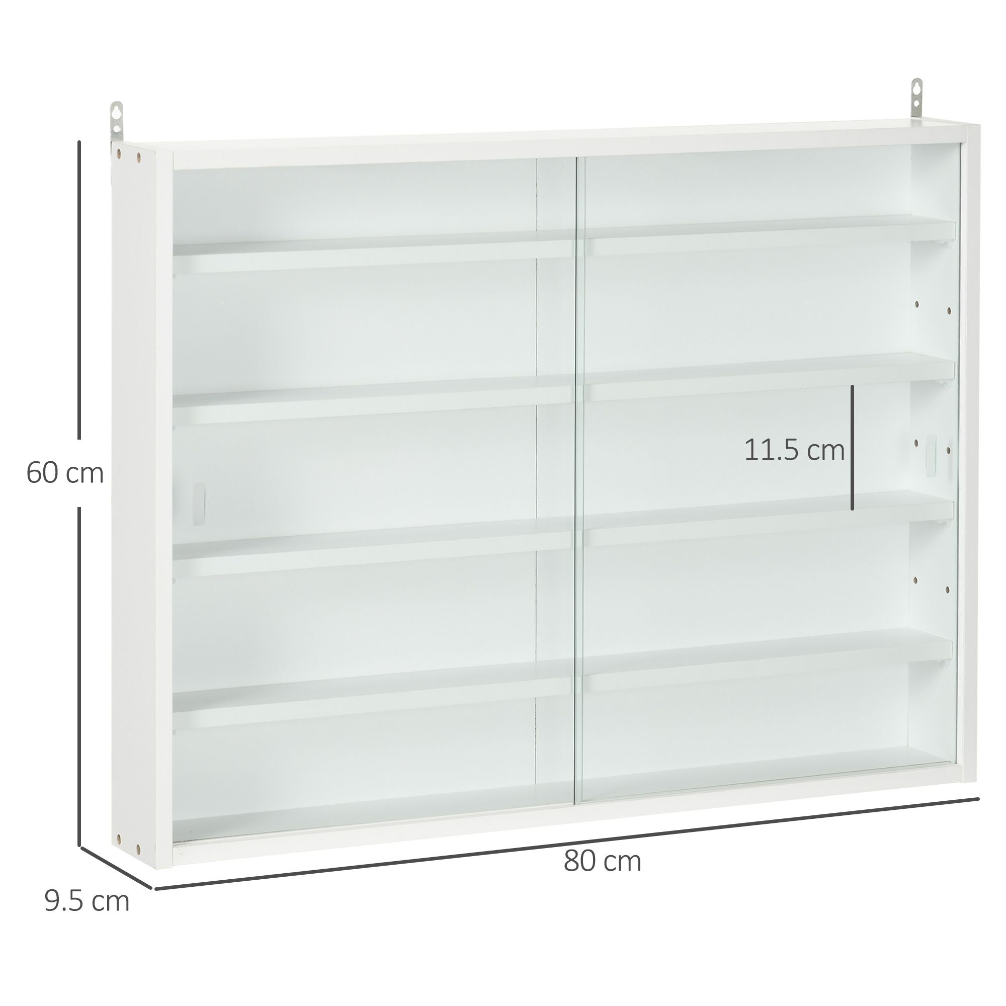 5-Tier Wall Display Shelf Unit Cabinet w/ 4 Adjustable Shelves Glass Doors Home Office Ornaments 60x80cm White