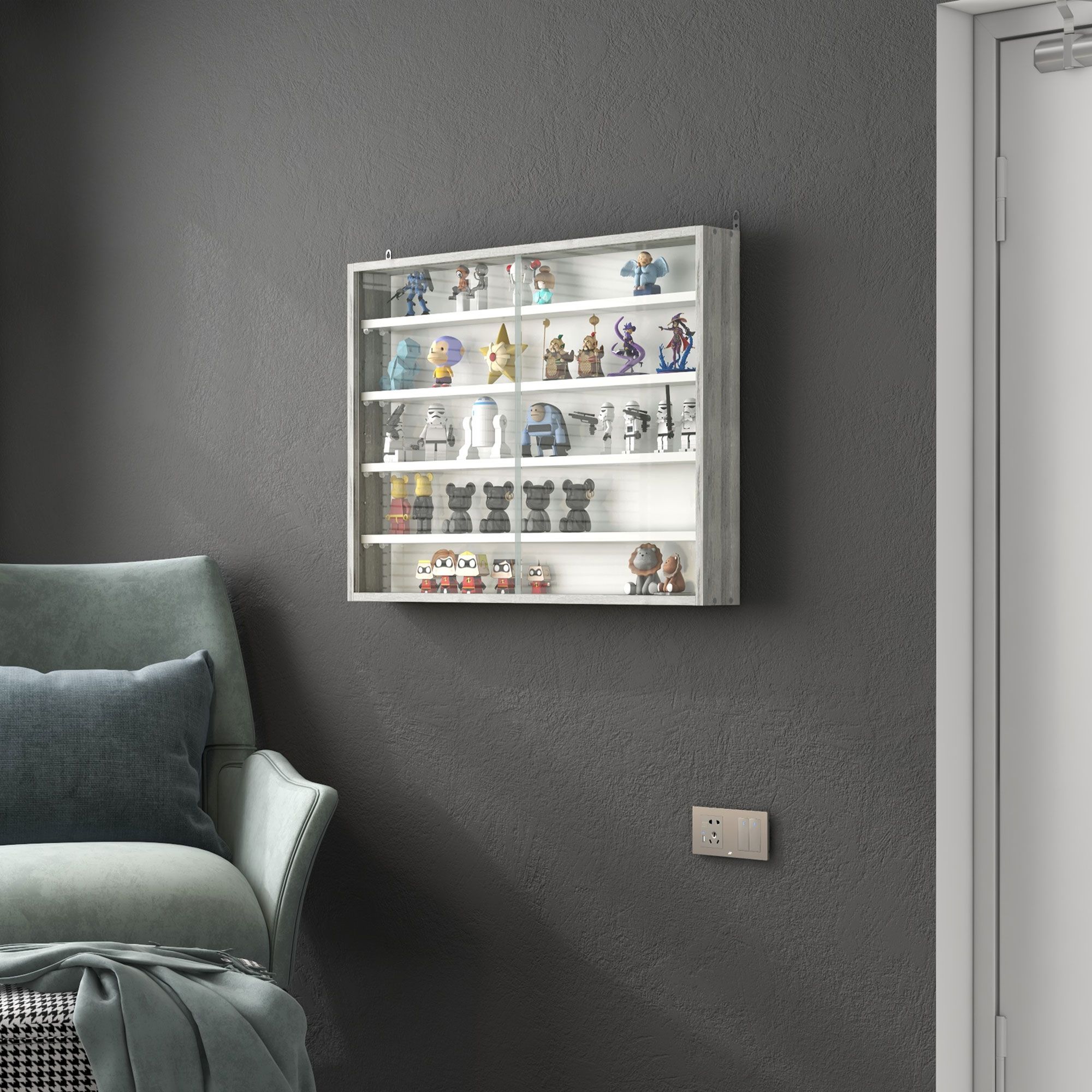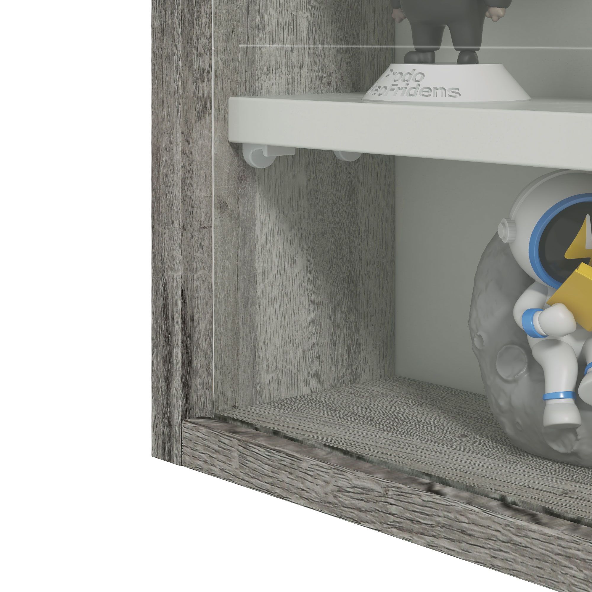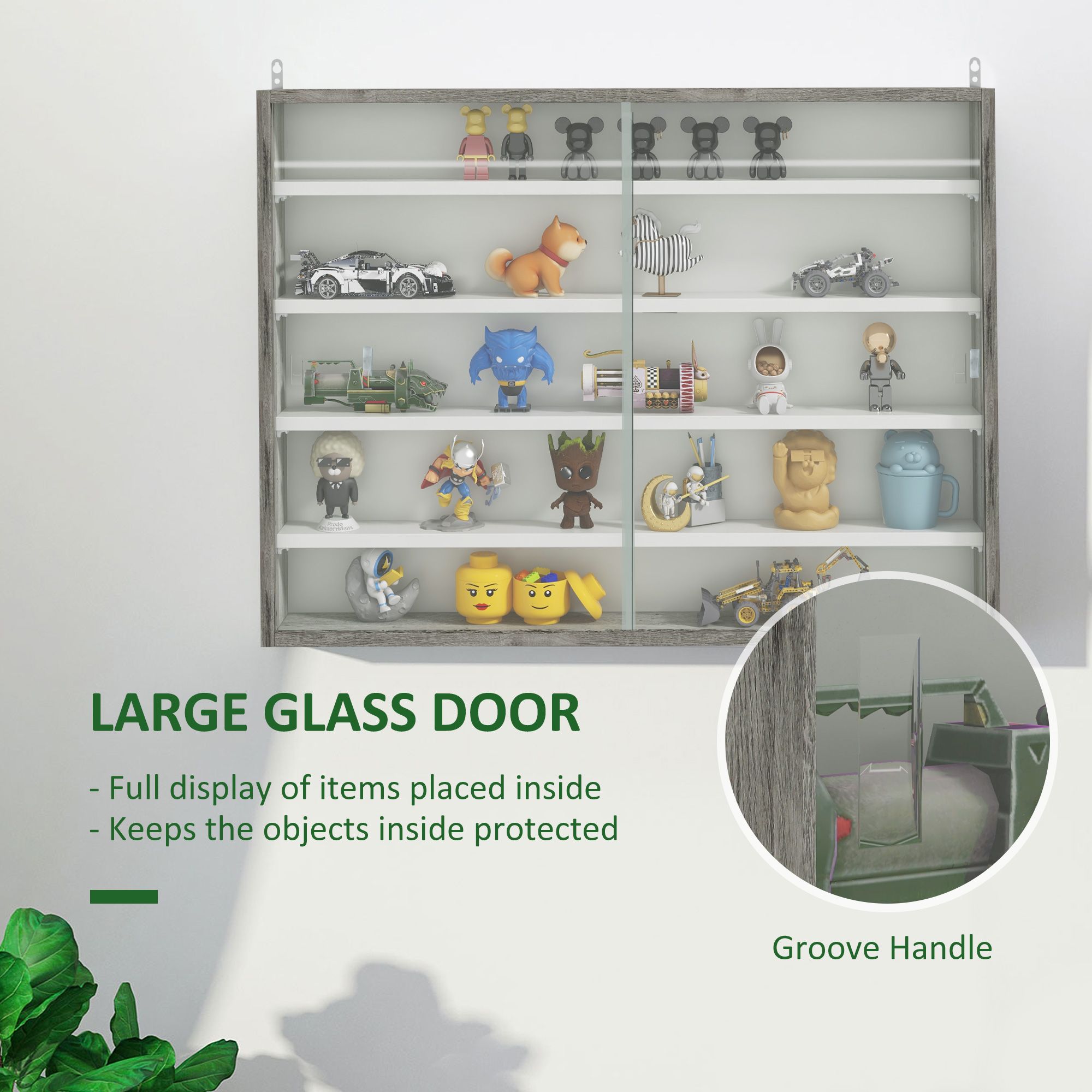 5-Tier Wall Display Shelf Unit Cabinet w/ 4 Adjustable Shelves Glass Doors Home Office Ornaments 60x80cm Grey Wood Grain