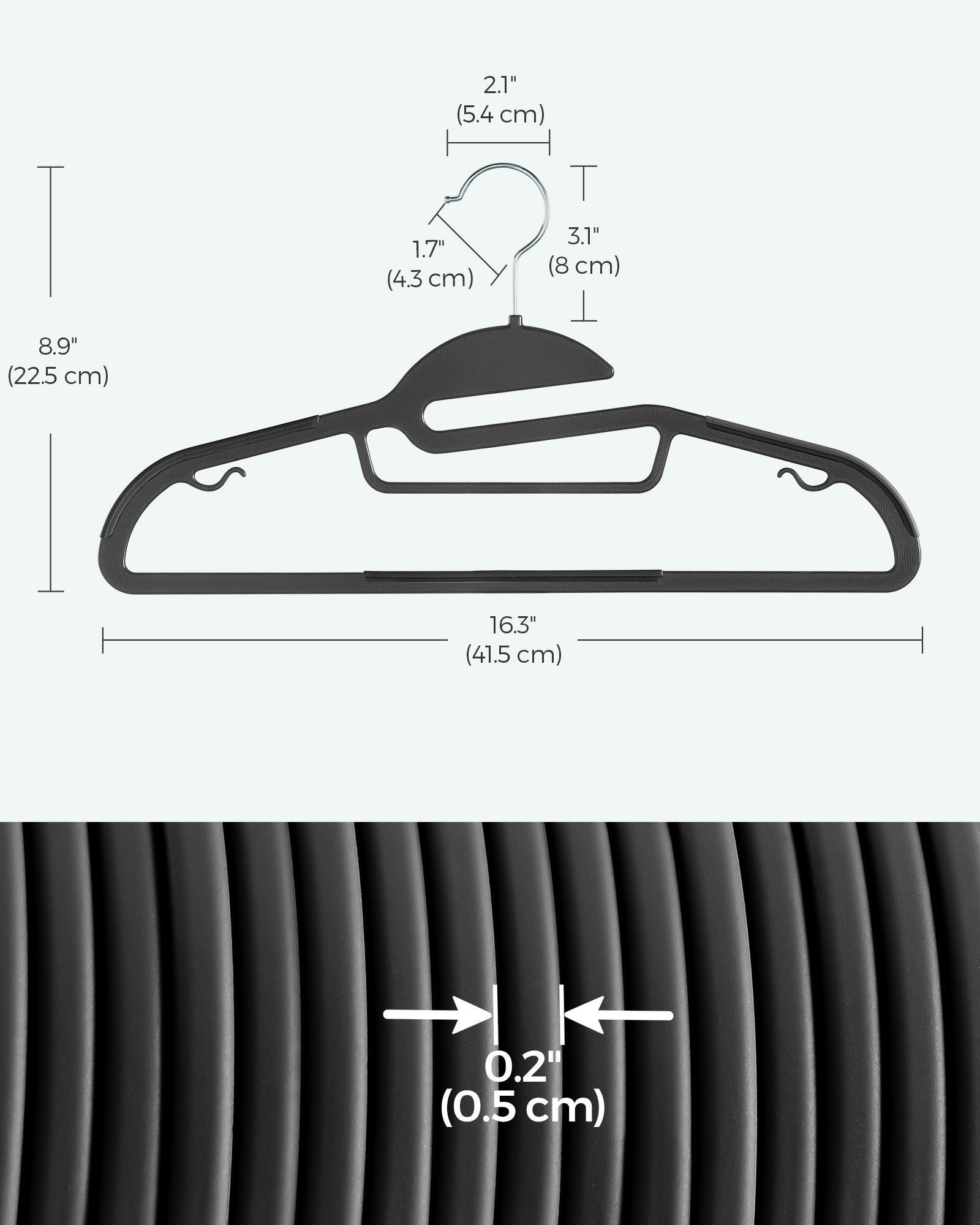 Introducing our 50-Pack of Plastic Hangers in Black, offering a convenient solution for organizing your wardrobe. Crafted with durable plastic, these hangers feature a sleek black finish for a modern look. Their slim design maximizes closet space while securely holding clothing items. Perfect for use in closets, laundry rooms, or garment racks. Elevate your closet organization with this practical and versatile pack of black plastic hangers.