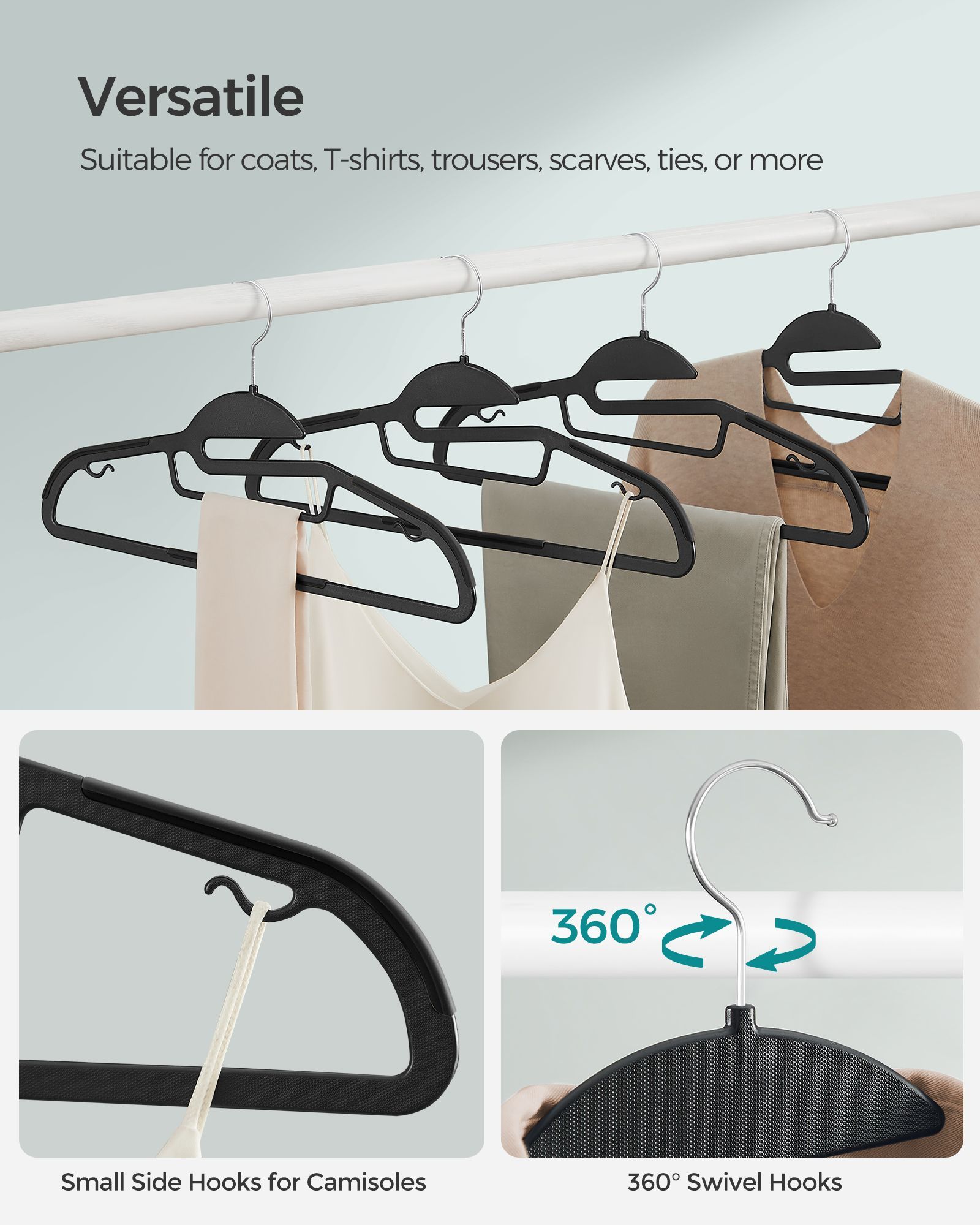 50-Pack Plastic Hangers Black