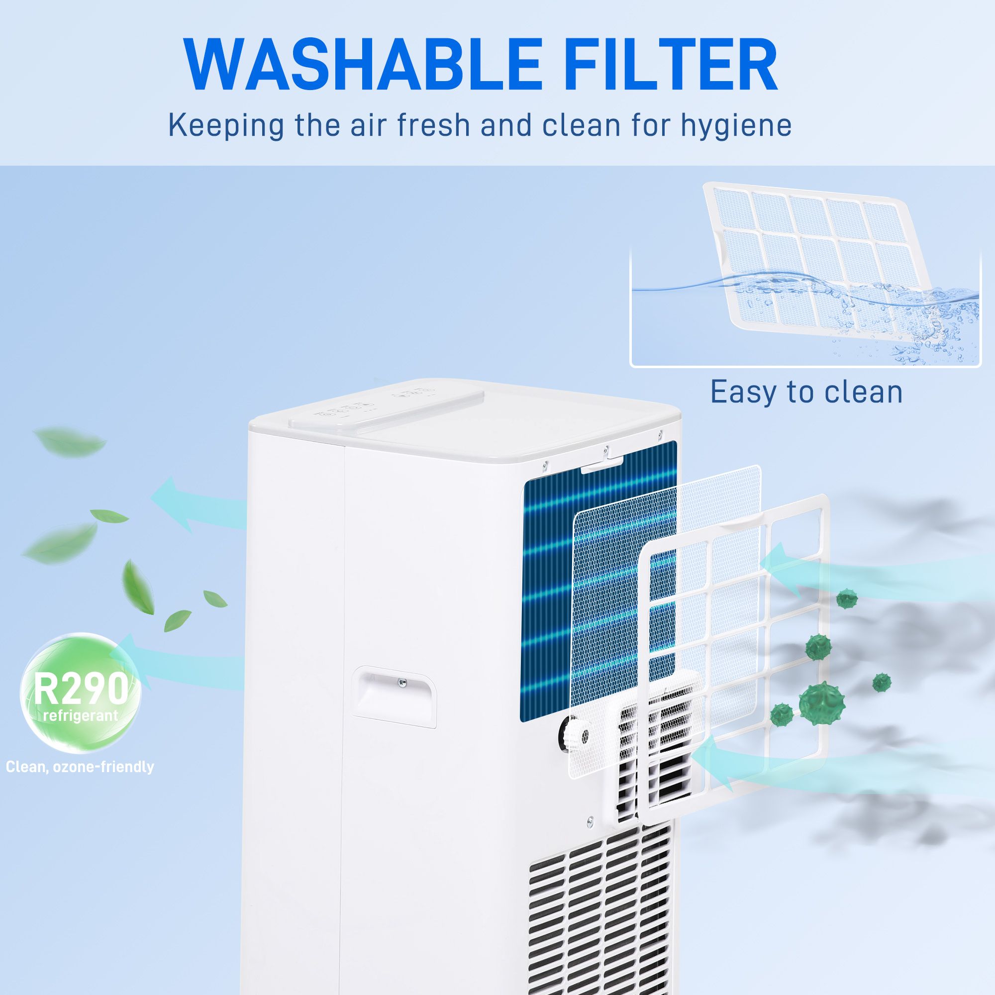 - EXHAUST HOSE INCLUDED: The portable ac air conditioner must be used with the pipe to work. REFRIGERANT R290 to deliver instant cooling for home and office