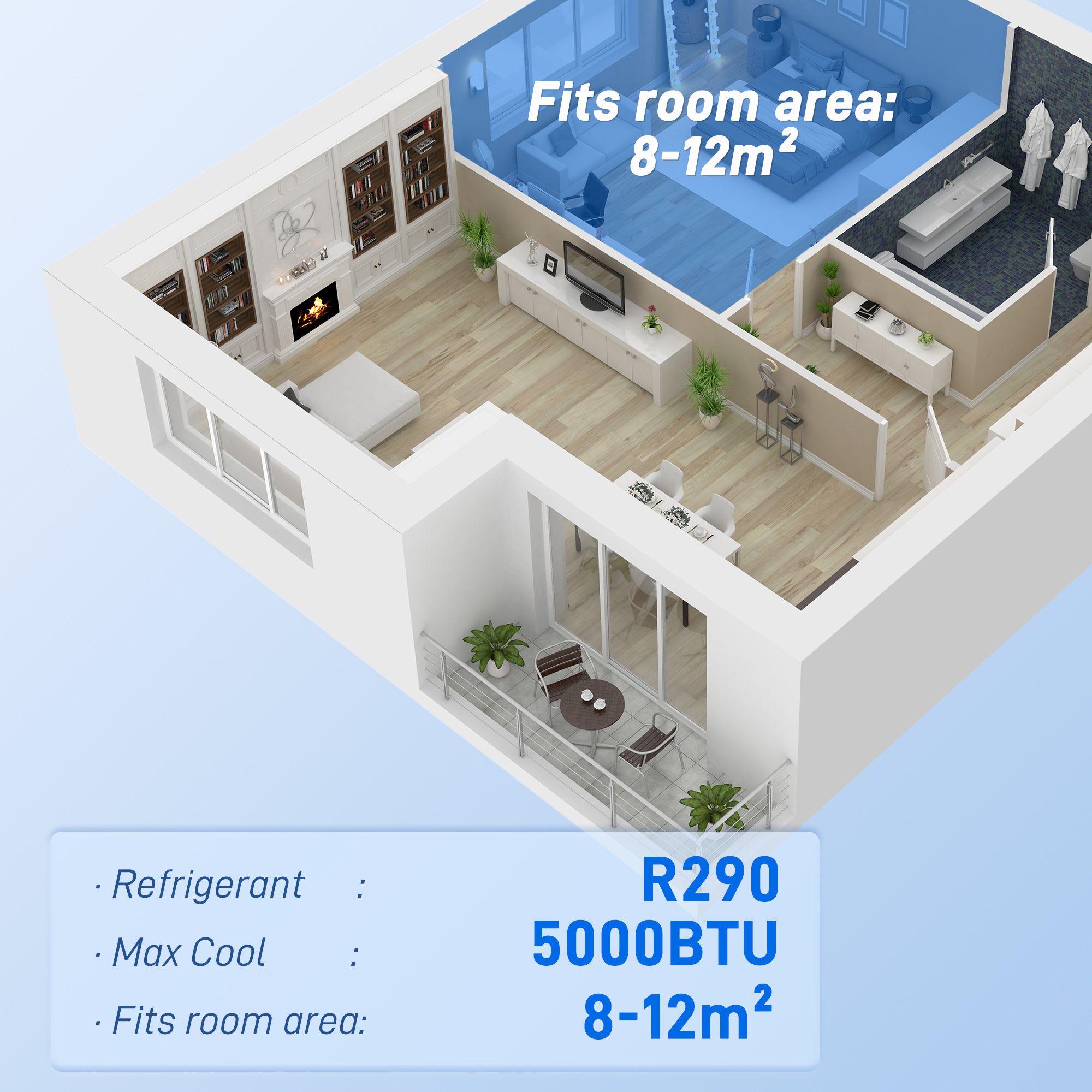 - Powerful R290 refrigerant and 5000 BTU
